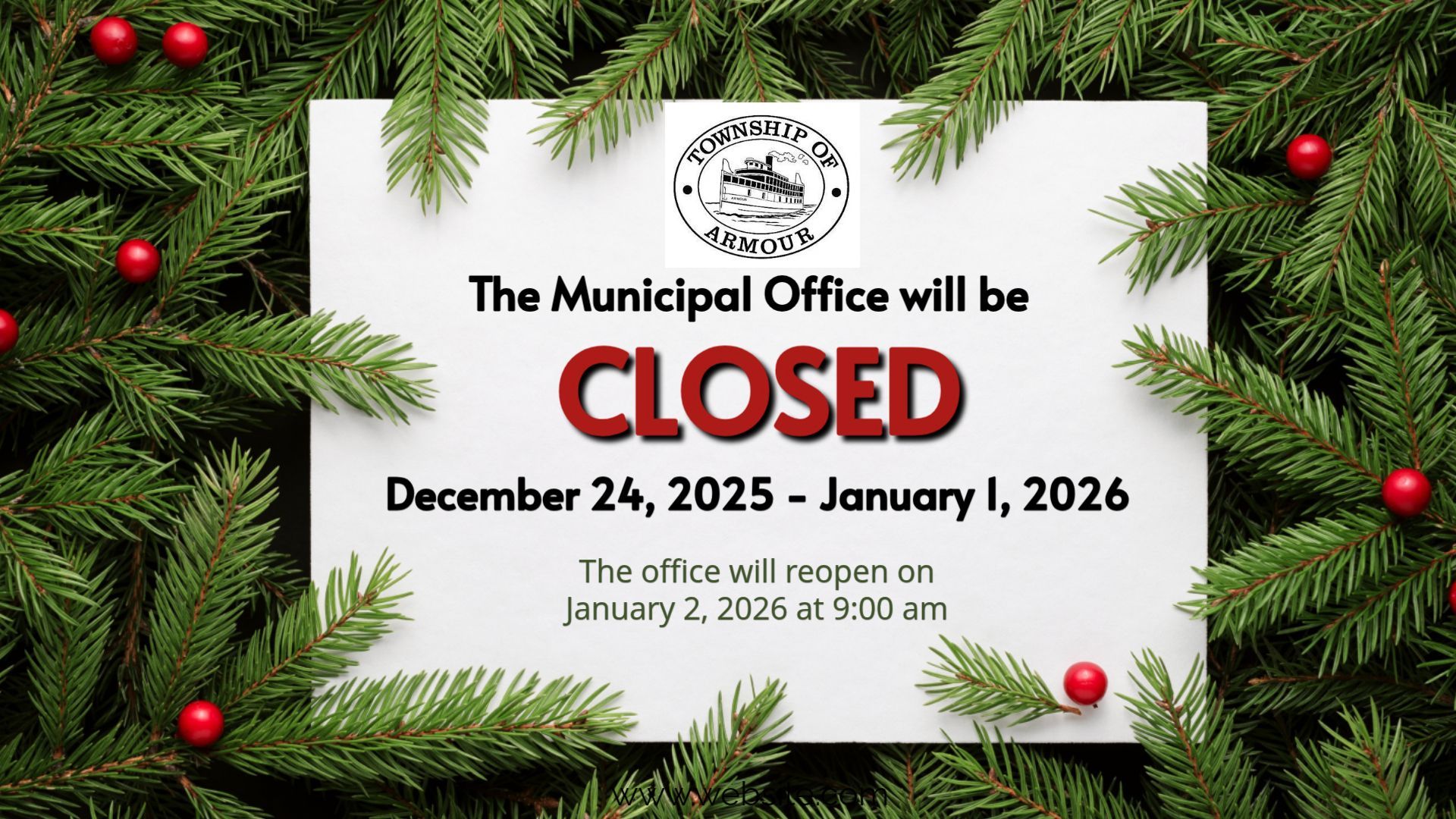 Municipal Office - Christmas Closure Notice